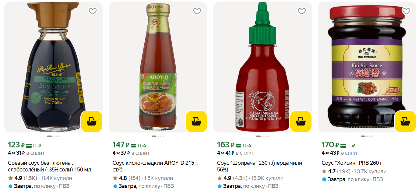 Приятные цена на разные соусы для вок-блюд, том-яма и повседневных экспериментов.