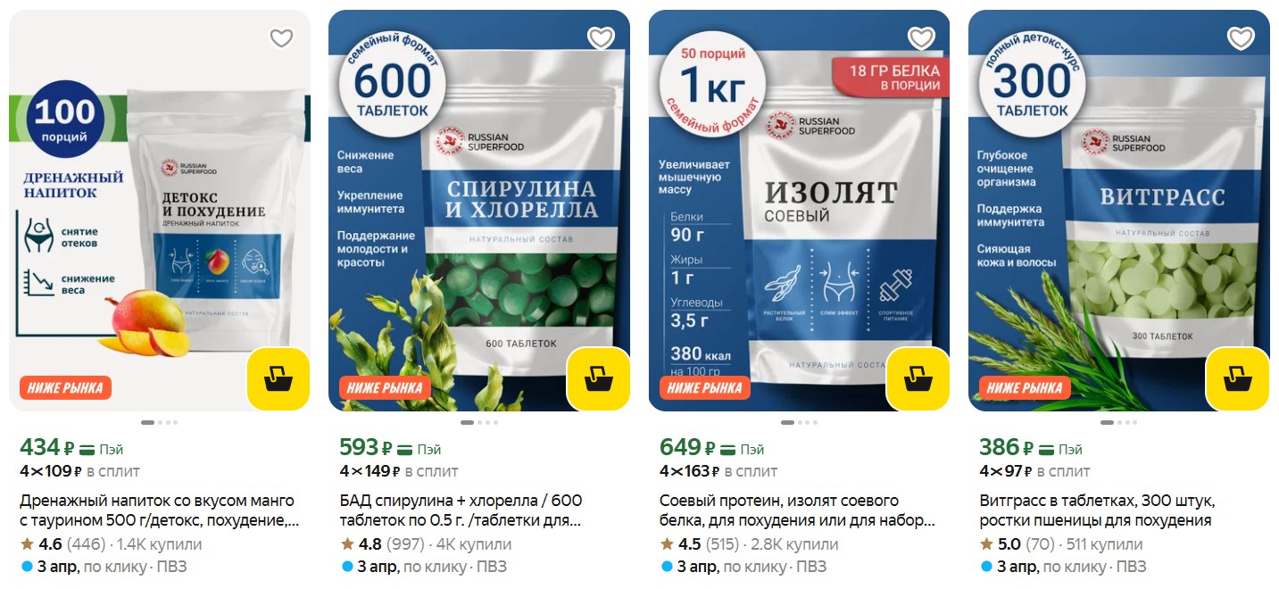 Отличные цены на БАДы Russian Superfood на Яндекс Маркет - действительно дешевле, чем на Ozon и Wildberries. Если следите за питанием и ищете качественные добавки без переплаты, сейчас хороший момент.