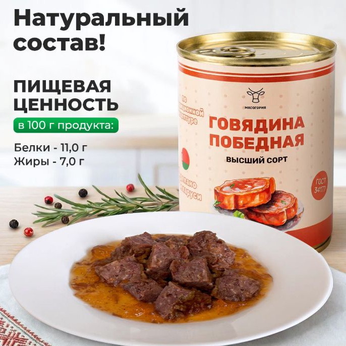 Смотри, что нашёл! Тушенка, Говядина белорусская, высший сорт, 2 шт с огромной выгодой.