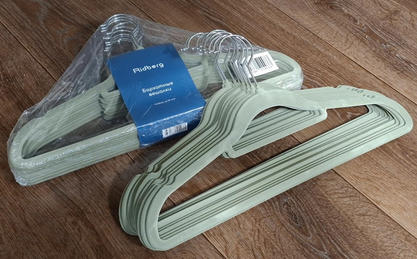 Случайно наткнулась на Маркете на вешалки по хорошей цене. Набор из 20 штук за 316 рублей, выходит около 16 рублей за штуку, что для бархатных очень бюджетно.