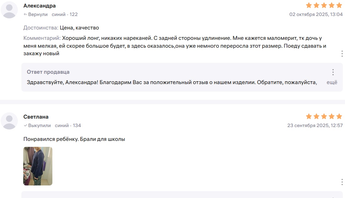 Натуральный хлопок в составе. Ткань мягкая, дышащая, приятная к телу. В ней комфортно и на уроках, и на прогулке. Не сковывает движения, не прилегает вплотную. Отзывы отличные.