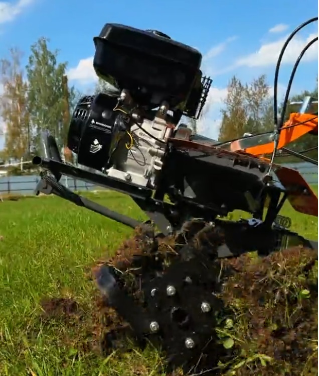 В комплекте фрезы, сошник, прицепное устройство, ключи, крылья, инструкция.