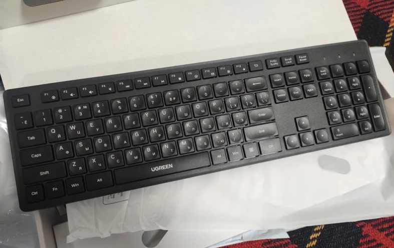 Полноразмерная беспроводная клавиатура с 104 клавишами и привычной русской раскладкой. Сейчас продавец даёт хороший купон на скидку и цена выходит очень выгодная. На маркетплейсах такая в 2 раза дороже.