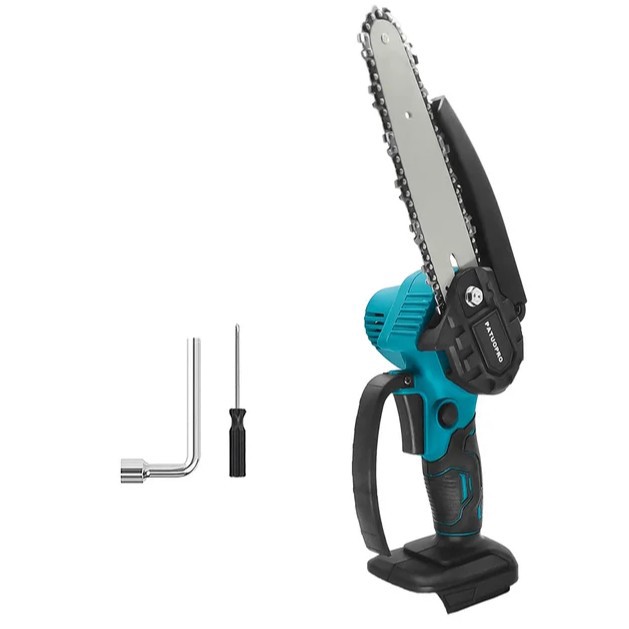 Компактный инструмент для обрезки веток и мелких садовых работ. Вес всего 810 г (без аккумулятора), управлять можно одной рукой. Шина позволяет пилить брёвна диаметром до 5.9 дюймов (~15 см) за считанные секунды. Работает от аккумулятора (нет в комплекте), предусмотрена защита от случайного пуска и щиток от разлёта щепы. Дачники и садоводы будут довольны. Подойдёт для обрезки деревьев, кустов, мелкого ремонта на участке. Но для серьёзных заготовок лучше взять обычную бензопилу.
