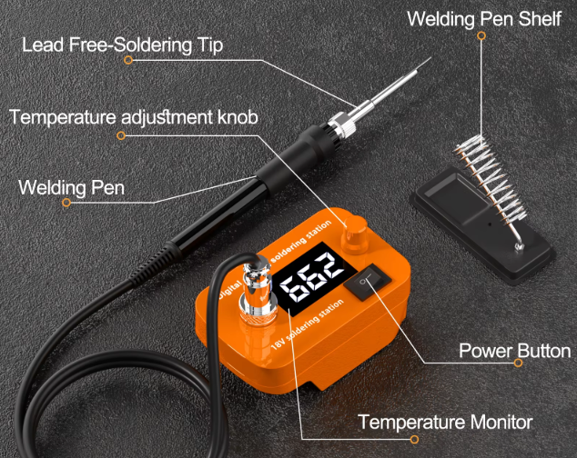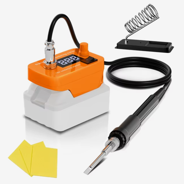 Мощность 60 Вт, температура регулируется от 300 до 510 град, есть дисплей с показателями работы. Для пайки проводов, клемм, ремонта электроники или автомобильной проводки вполне хватает. Нагревается быстро, жало держит температуру стабильно. Бюджетный вариант для электромонтажных работ, DIY-проектов или ремонта техники на выезде.
