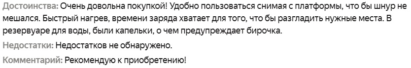 Мощный паровой утюг, подошва керамическая, хорошо скользит по тканям, нагрев быстрый (мощность 2400 вт), паровой удар 145 г/мин, постоянный пар 30 г/мин.