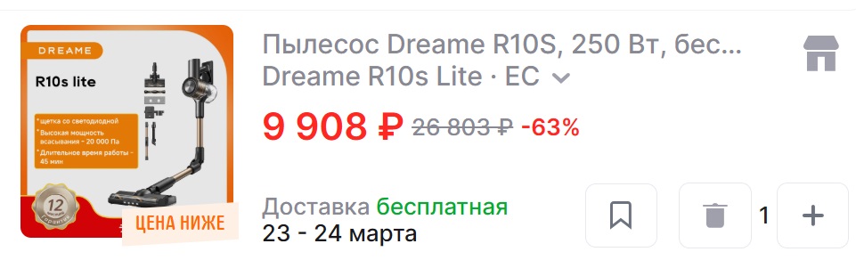 Мощность всасывания 20 000 Па.