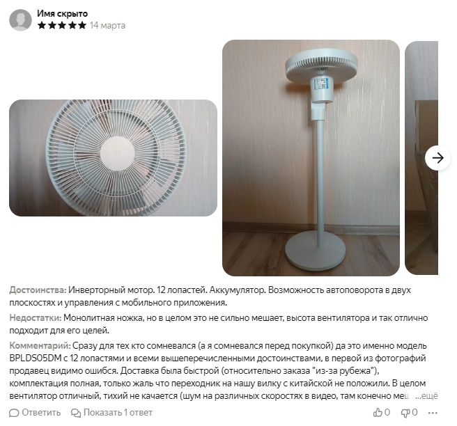 Вентилятор оснащен инверторным двигателем. Управлять можно через приложение Mi Home и голосового помощника Алису, также есть таймер на 8 часов. В отзывах пишут о том, что версия приходит именно с 12 лопастями.