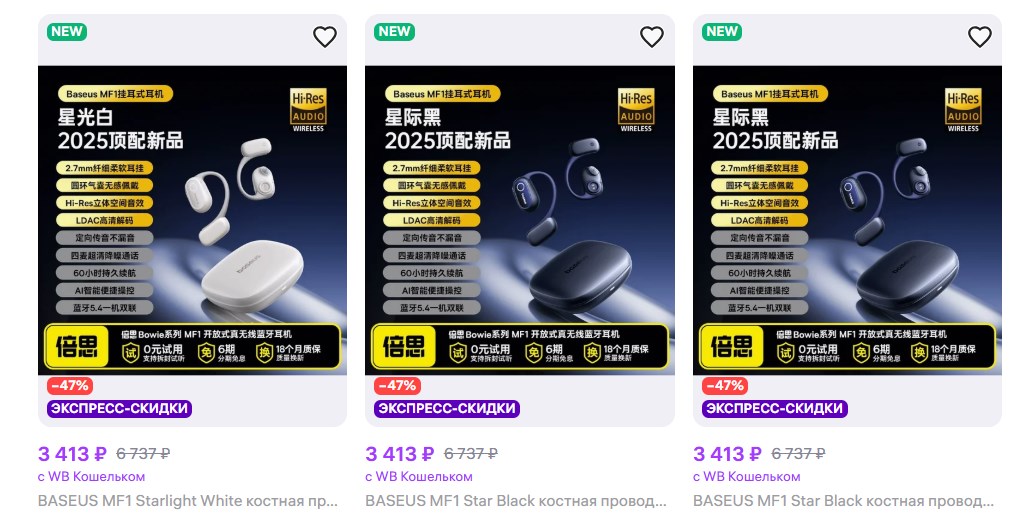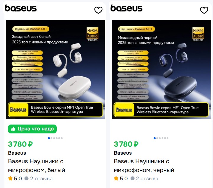 На Алике нашёл наушники для бега или велика - Baseus Bowie MF1 за 1063₽ с купоном. На Ozon и WB они от 3к стабильно.