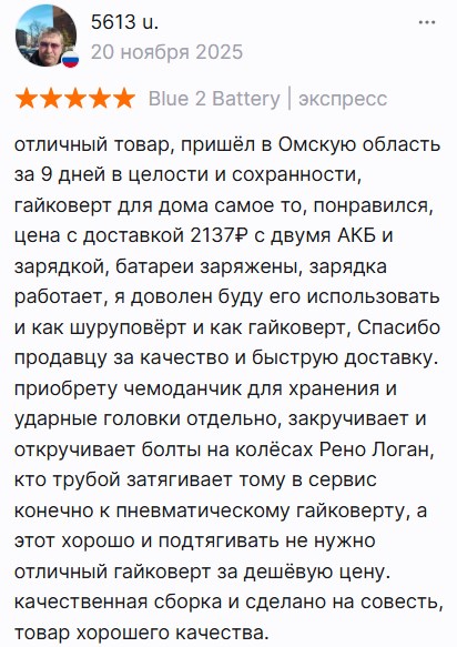 Характеристики: бесщеточный двигатель, квадрат 1/2 дюйма, крутящий момент до 520 Нм - такого обычно хватает, чтобы сорвать колесные гайки или закрутить их на «минимуме», а потом дотянуть ключом, если переживаете за резьбу. По форумам, народ китайскими гайковертами пользуется и доволен.