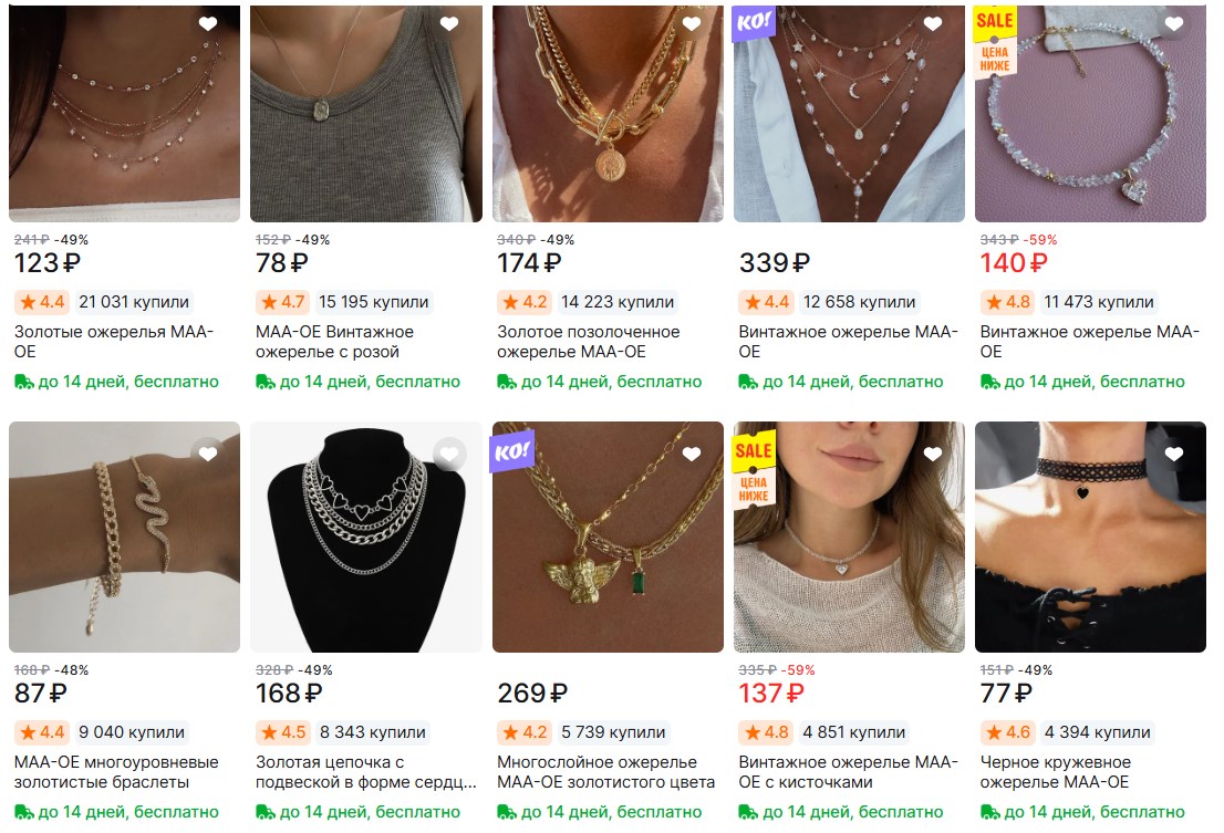 Ребята, кто любит украшения на каждый день или ищет что-то новое под настроение - посмотрите MAA-OE на AliExpress. Все позиции в пределах 150₽, можно набрать сразу несколько штук. Выглядят вполне симпатично, по фото - ничего стыдного.