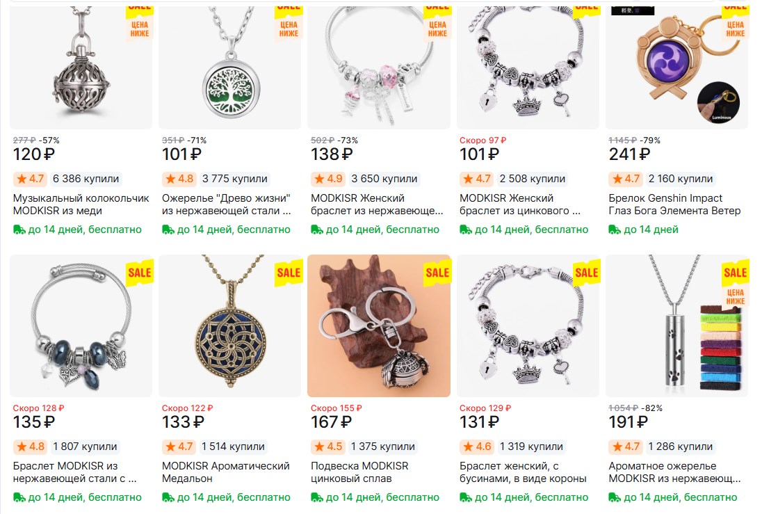 Ой, нашла симпатичную бижутерию MODKISR на AliExpress. Цены там очень гуманные, плюс доставка бесплатная.