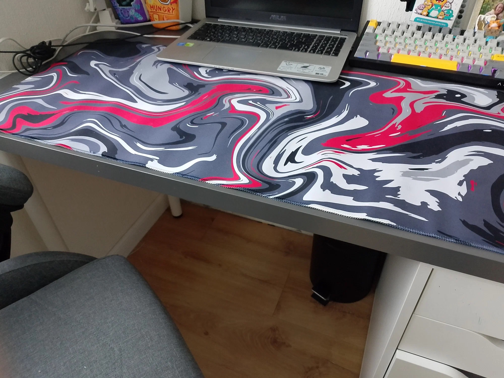 Можно стирать при необходимости. Если прольётся чай или просто запылится - не проблема, постирал и как новый. Огромный выбор рисунков на выбор. Закрывает большую часть стола, можно свободно двигать и мышку, и клавиатуру. Ничего не съезжает на голый стол.