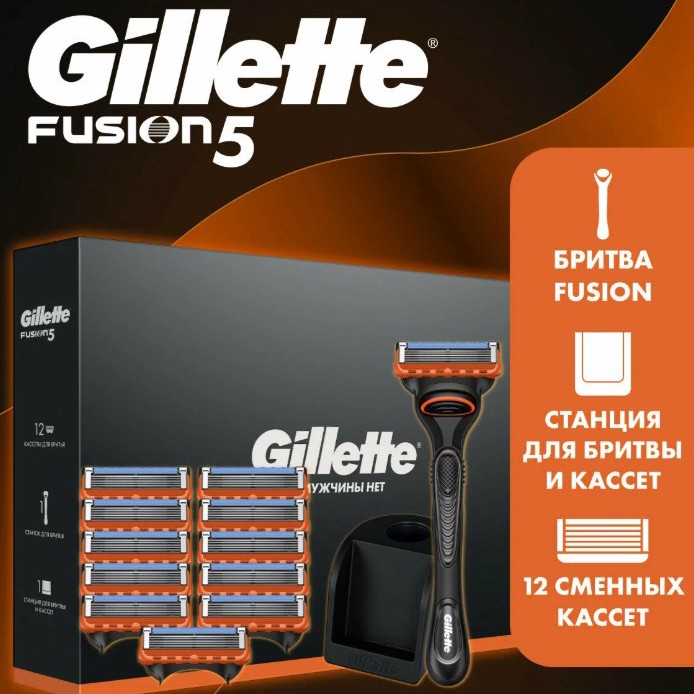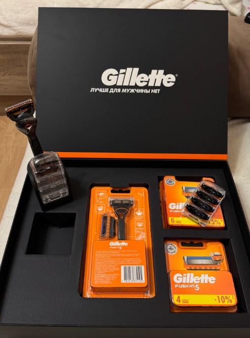 Всё упаковано в премиальную коробку: бритва с пятью лезвиями и триммером, годовой запас сменных кассет и стильная подставка. Умная полоска с индикатором износа и увлажняющая прослойка берегут кожу от раздражения.
