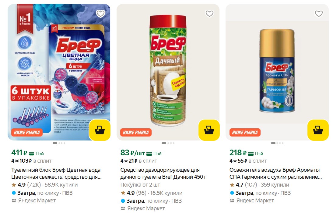 Я тут недавно обновляла бытовые запасы и нашла на Маркете очень выгодные цены на Bref. Оказалось, в их каталоге в разделе «любимая категория» сейчас самые адекватные цены.