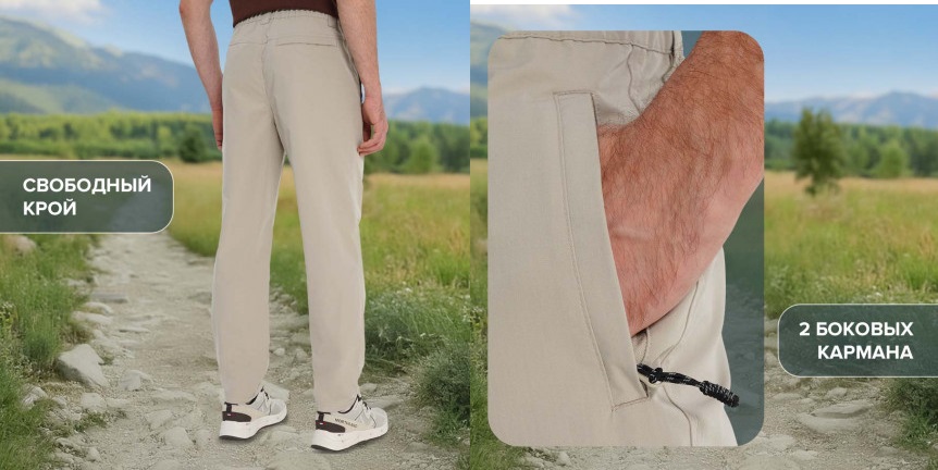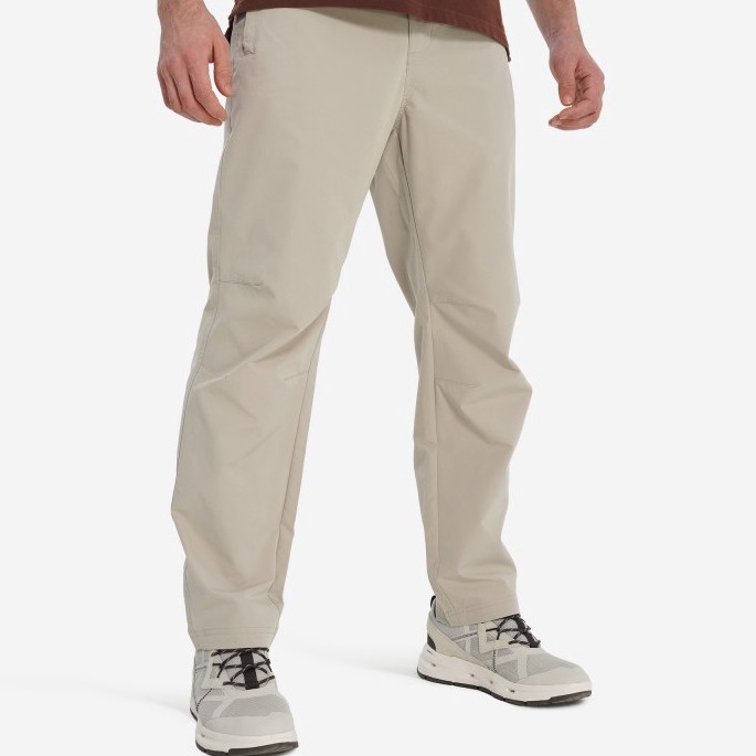 Наткнулся в товарах для на хороший вариант на лето и весну. Материал рипстоп плотный и износостойкий. Прослужат дольше обычных. Пропитка PeakDry WR защищает от небольшого дождя. Капли скатываются, не впитываются. В ливень, конечно, промокнут, но для лёгкой мороси нормально. Крой свободный, с артикуляцией в коленях. Не сковывают движения, можно присесть, шагнуть широко, даже по горам лазать. Универсальные - и по городу гулять, и в лёгкий поход, и на дачу. Не выглядят как военные штаны, но и не офисный вариант.