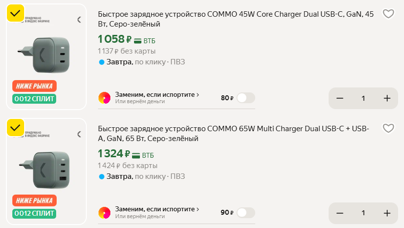 Выбирай зарядник и экономь 20% по коду, есть модель Multi Charger на 65 Вт с двумя USB-C и одним USB-A за 1324 р и Core Charger на 45 Вт с двумя USB-C за 1058 р. У меня такеи цены, если оплачивать картой ВТБ.