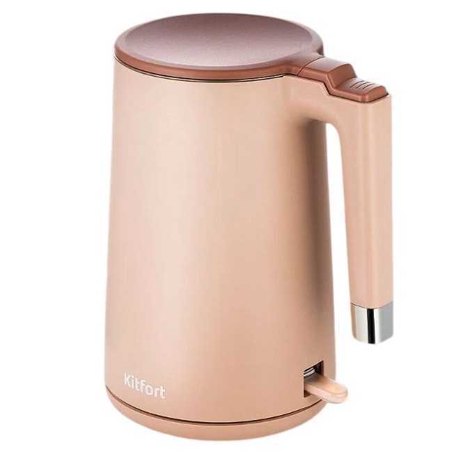 Мощность 2200 Вт - греет быстро. Двойные стенки: внутри нержавейка, снаружи пластик - чайник не обжигает, вода дольше горячая. Вращается на 360°, ставить удобно.
