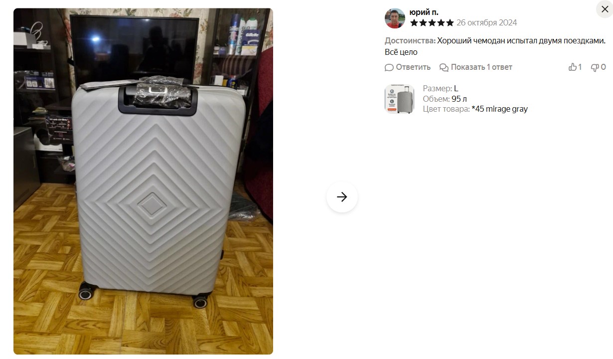 Это нормальная цена за 95-литровый вариант на четырёх колёсах. Материал - обычный ударопрочный полипропилен, внутри стандартные ремни и разделитель. Кодовый замок и алюминиевая ручка - сейчас это почти база в таком сегменте.