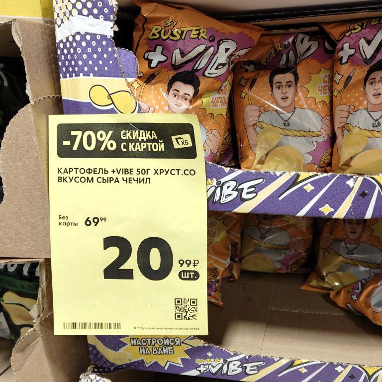 Кто не знает, немного информации из интернета: "Картофельные чипсы +Vibe - это линейка, выпущенная брендом Московский картофель в коллаборации со стримером Вячеславом Buster Леонтьевым".