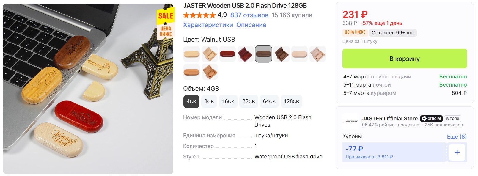 зацените флешки JASTER Wooden на Али. деревянные, красивые, от 231 рубля.