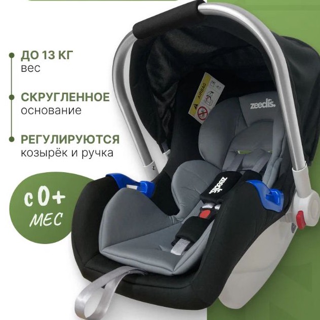 Подойдёт для детей с рождения, имеет 3-х точечные ремни безопасности и регулируемый козырек. Подходит для установки в автомобиле и укачивания дома, съемный матрасик.
