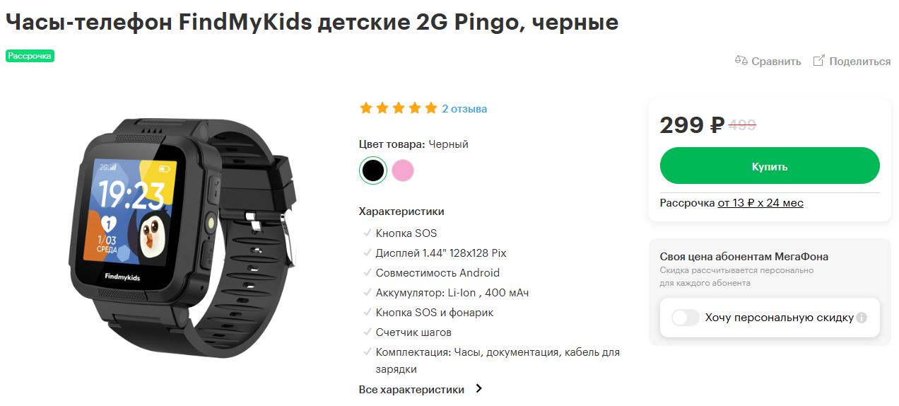 FindMyKids 2G Pingo, чёрные за 299₽