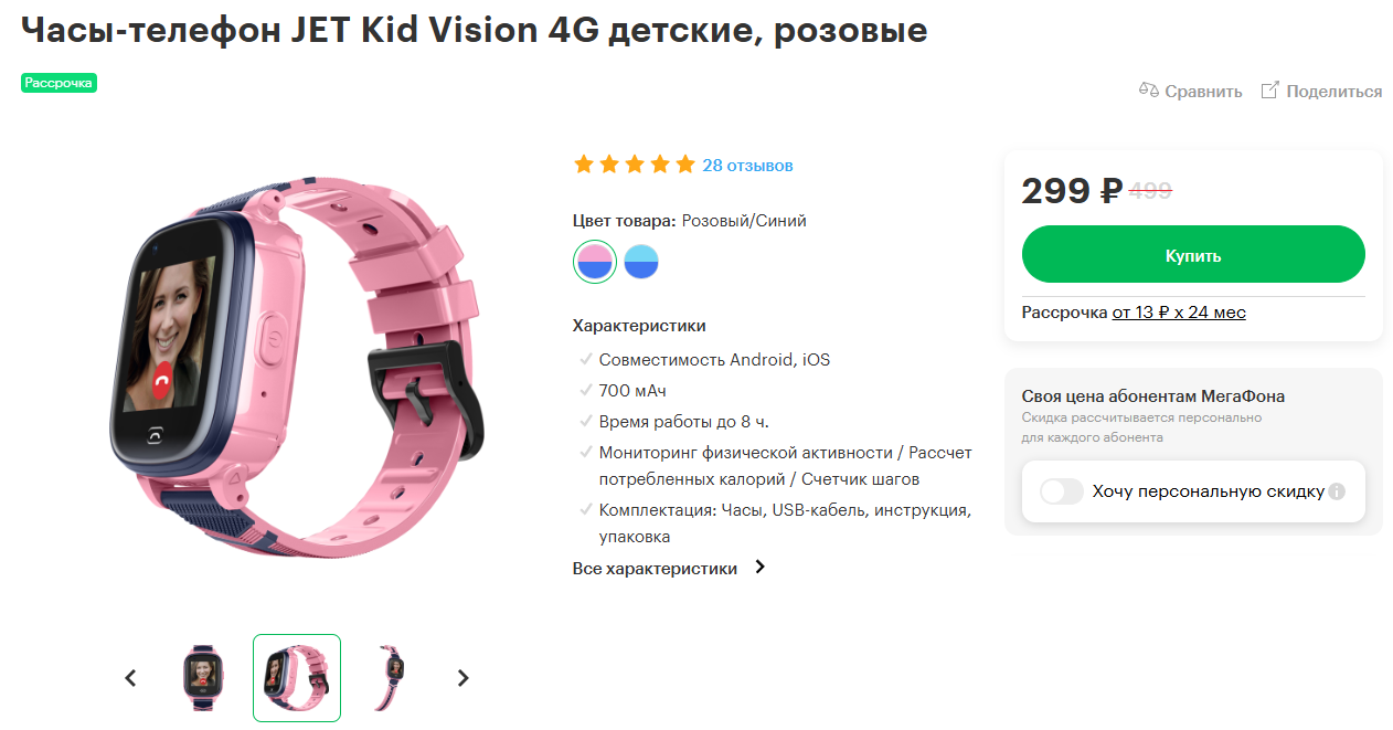 JET Kid Vision 4G, розовые за 299₽