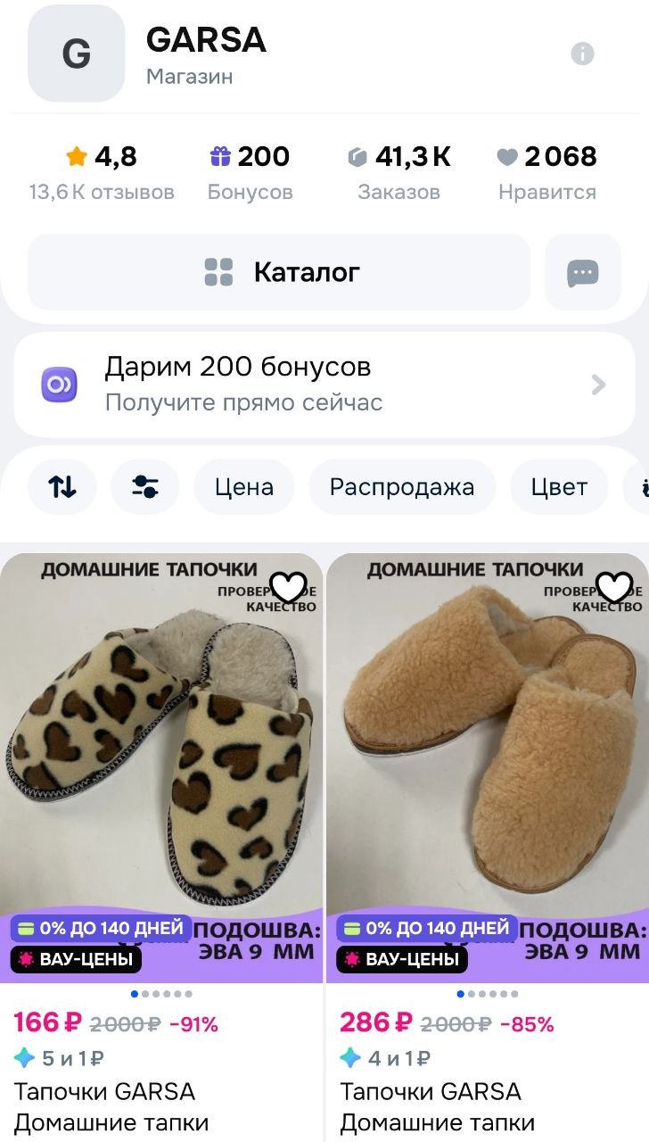 Выбираем тапки/размер (цена отличается от размера) и добавляем в корзину