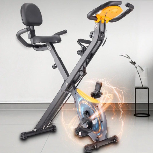 Это хорошая цена на велотренажёр, в других местах такой от 17 тысяч. Модель серого цвета, с магнитной нагрузкой и 8 уровнями сопротивления. Выдерживает пользователя до 110 кг, сиденье мягкое с регулировкой по высоте, есть спинка, тренироваться комфортно даже с больной спиной. На ручках встроены датчики пульса, плюс в комплекте эспандеры для рук и спины - это редкость для домашних тренажёров. На LCD-дисплее видно время, скорость, расстояние, пульс и калории, есть подставка для телефона или планшета. Рама складная X-образная, с компенсаторами неровности пола и транспортными роликами, убирается легко. Регулируется под рост до 190 см. Габариты в разложенном виде: 51×98×107 см, весит 19 кг. Домашний вариант без переплат, со всем необходимым.