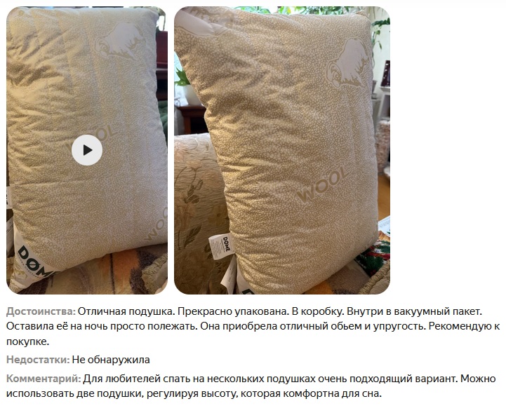 Цена всего 732р. Классная подушка для сна с наполнителем из натуральной овечьей шерсти (70%) и микроволокна (30%). Она обладает антибактериальным эффектом, гипоаллергенна и подходит для комфортного отдыха. Рамер 50х70 см, чехол из микрофибры + бамбуковое волокно.