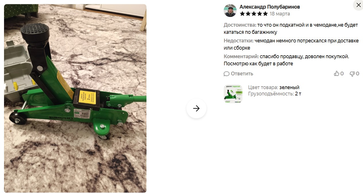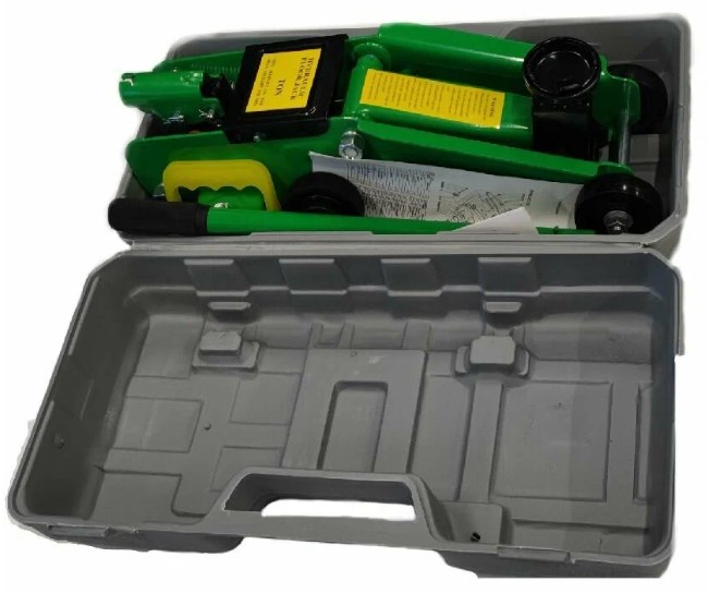 На Яндекс Маркете за 1987₽. Компактный подкатной домкрат на 2 тонны - для большинства легковых машин хватит с запасом. Высота подхвата 135 мм, подлезть под низкую машину можно, максимум поднимает до 340 мм. Есть колёсики для удобного перемещения по гаражу.