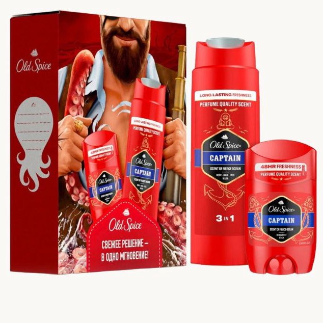 Подарочный набор Old Spice Captain дезодорант-стик 50 мл + гель для душа 3в1 250 мл за 458₽. Брутальный аромат для уверенных в себе
