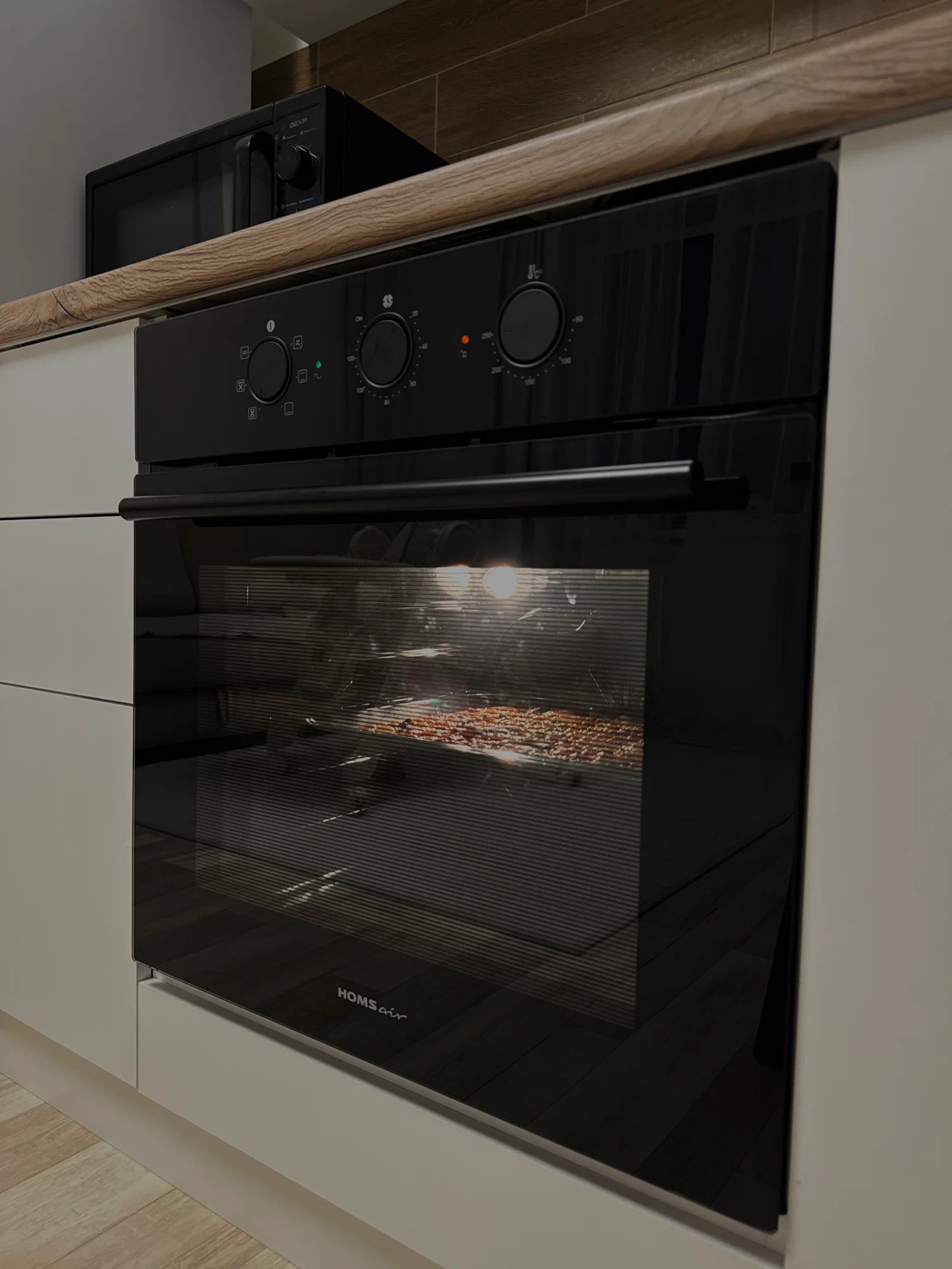 Цена итак хороша, а после покупки начислят за отзыв 450 баллов. Объём у неё 60 литров, независимая установка.. Утапливаемые ручки Push Pul. Дверца с тройным стеклом. Режимы такие - классический верх/низ, конвекция с вентилятором, гриль, разморозка, эко-режим. Мощность 2.4 кВт. Для дома и готовки - полезная вещь.