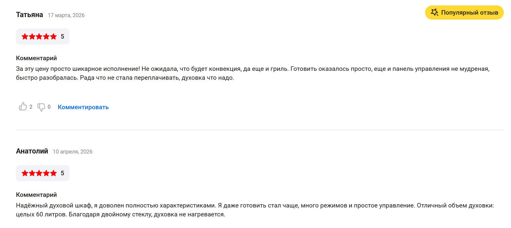 В комплекте противень и решётка, есть вентилятор охлаждения и подсветка.