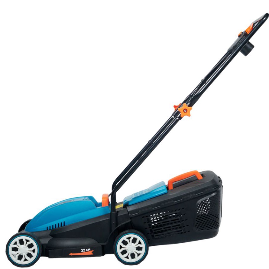 Ширина скашивания 34 см, высота от 20 до 60 мм - три положения, под любой газон. Травосборник 35 литров, не бегаешь каждые пять минут вытряхивать. Ручка складная - в багажник влезает, на зиму не мешается. Колёса маневренные, по кочкам ходят без проблем.
