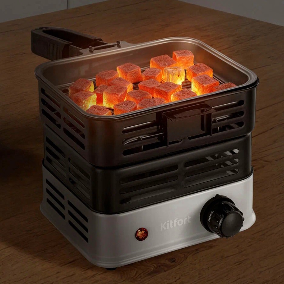 Время нагрева - 5-8 минут. Регулировка температуры, съёмная длинная ручка, индикатор нагрева. Корзина для углей в комплекте. Не даст испортить кухонную плиту.