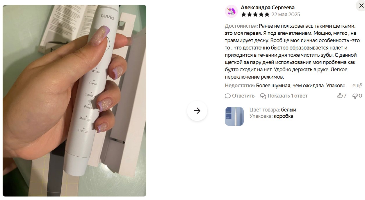 Мужики, электрическая зубная щётка Tuvio TBOS-501 за 800₽ с промокодом 20FACTORY на Маркете по получасовой распродаже. В других местах от 2к просят.