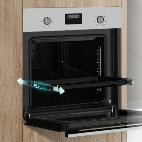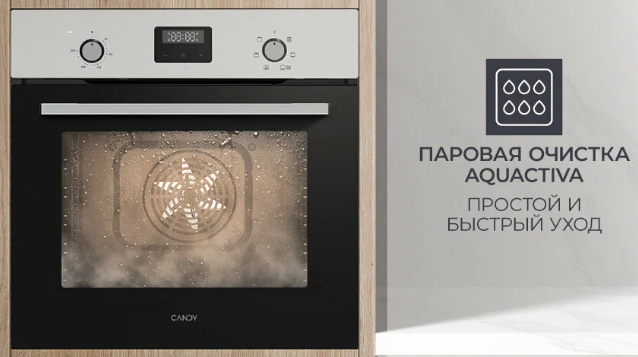 Встраиваемая духовка с объемом 62 л в нишу 56х60 см. 6 режимов, включая нижний нагрев и гриль, управление поворотными ручками, есть дисплей, таймер со звуком и удобная галогеновая подсветка. Очистка гидролизная - пар размягчает жир, остаётся только протереть. В комплекте противень и решетка.