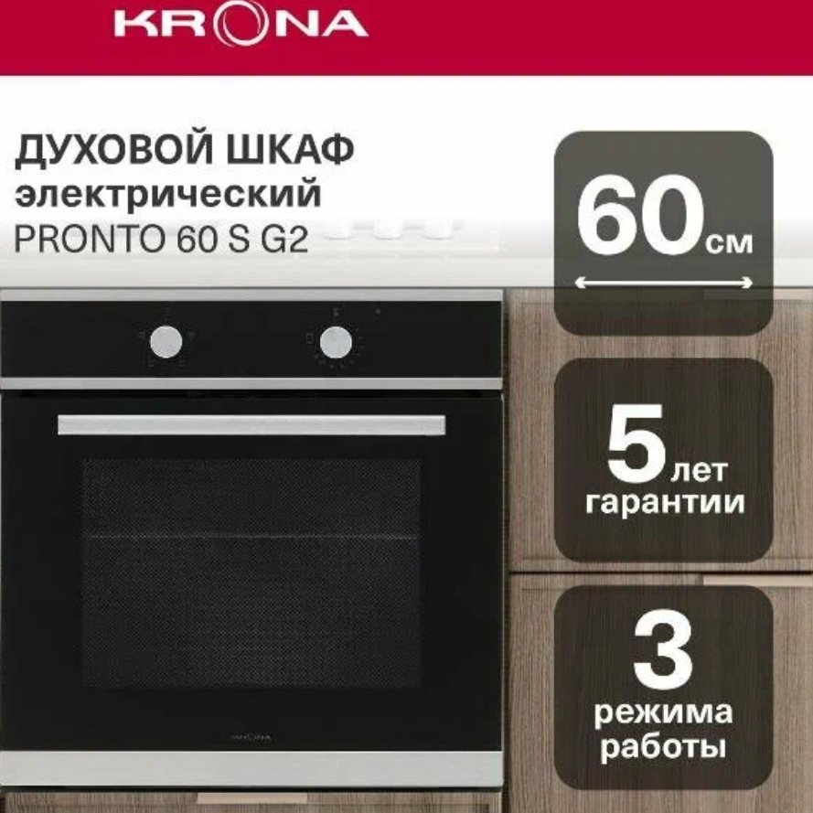 Объём 68 литров, габариты составляют 594 мм в высоту, 594 мм в ширину и 521 мм в глубину, а для установки рекомендуется ниша размером 600x558x550 мм. Оснащена тремя режимами работы, галогеновым освещением камеры и индикатором времени приготовления, максимальная рабочая температура достигает 260°C.