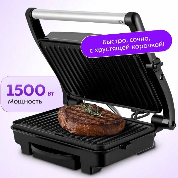 Для мяса, рыбы, овощей, сэндвичей - универсал. Двусторонний, закрыл крышкой и готовится сразу с двух сторон.