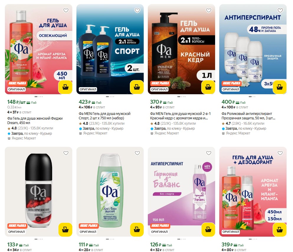 Ребята, заглянул в любимую категорию недели на Яндекс Маркет и увидел там приятные цены на гели для душа Фа. Дополнительная скидка 25% уже включена в стоимость - ничего вводить не нужно.
