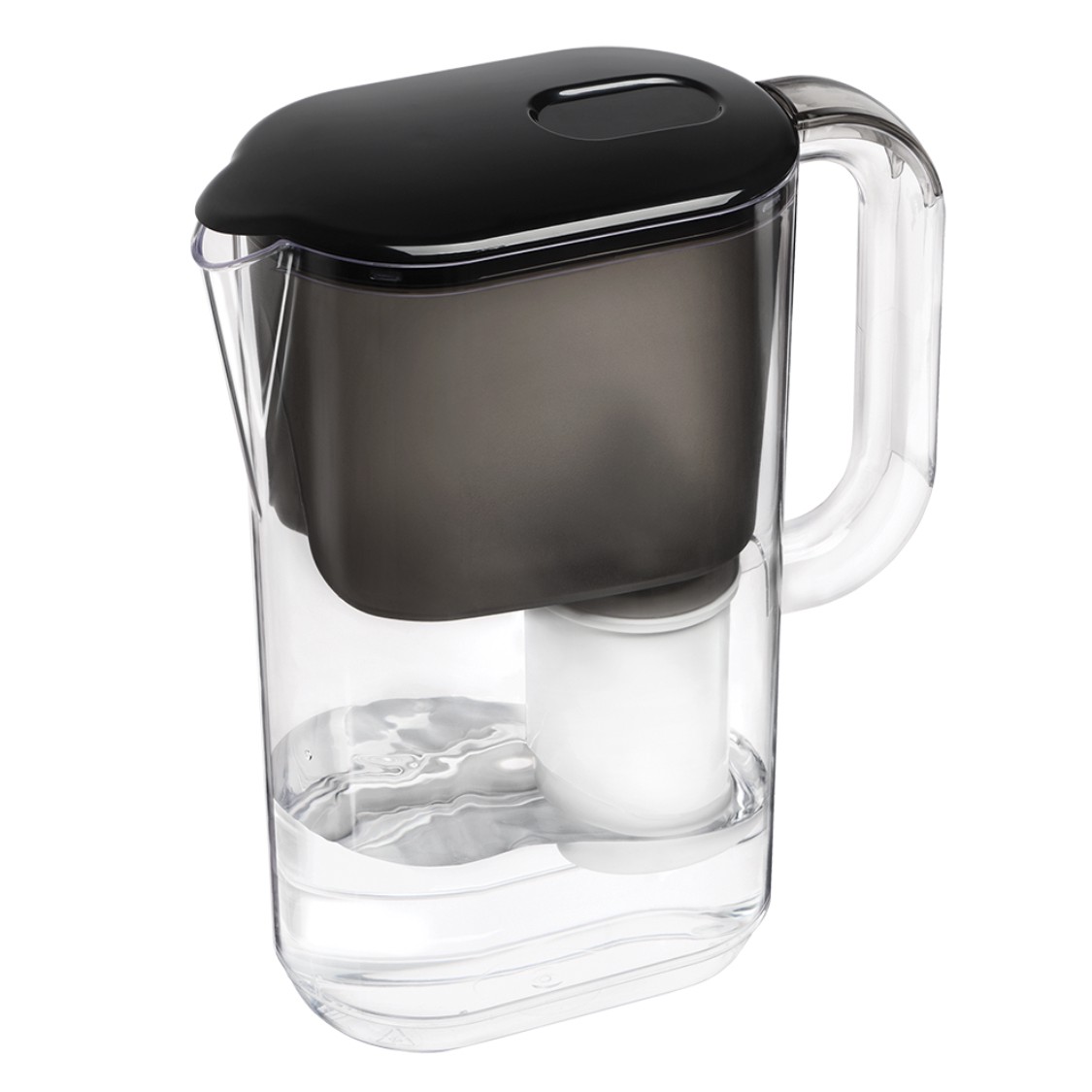 Маленький, аккуратный, на 2.5 литра. Фильтрованной воды влезает ровно литр (как раз в стандартный чайник)
