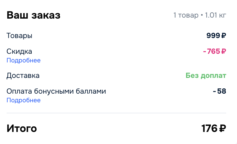 Сначала надо взять бонусы продавца тут, а потом применить купон. Получается за 1 кг - 176р!