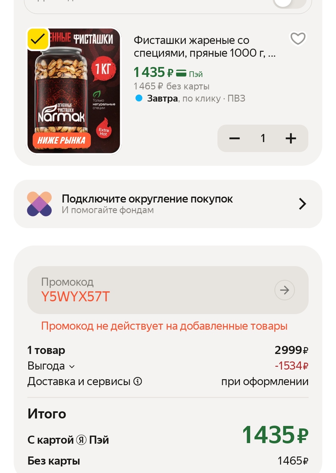 В других магазинах цена за 1 кг от 1775р. Продукт известного бренда, фисташки крупные, отборные, обжаренные и подсоленные. Орехи хрустящие, вкус насыщенный, а аромат приятный.