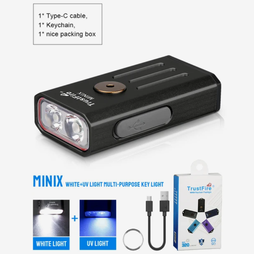 Мини-фонарь Trustfire MINIX за 799 рублей, если заказать через комбо-корзину. Выглядит как металлическая зажигалка, но внутри два источника света. Есть вариант с белым и красным светом или белым и ультрафиолетом.