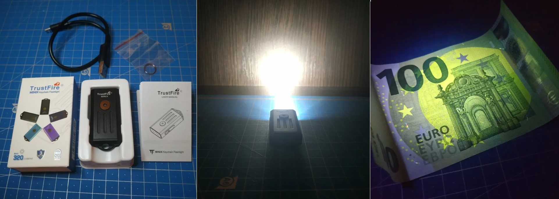 Шикарный фонарик. Имеет очень удачный дизайн и отличное качество сборки. Светит ярко холодноватым белым светом. Всего 4 режима яркости основного фонаря + 2 дополнительного ультрафиолетового фонаря. Подходит для проверки купюр на предмет подделки. Очень доволен приобретением. Фонарь был упакован надежно, получил его спустя 3 недели. Рекомендую к покупке.