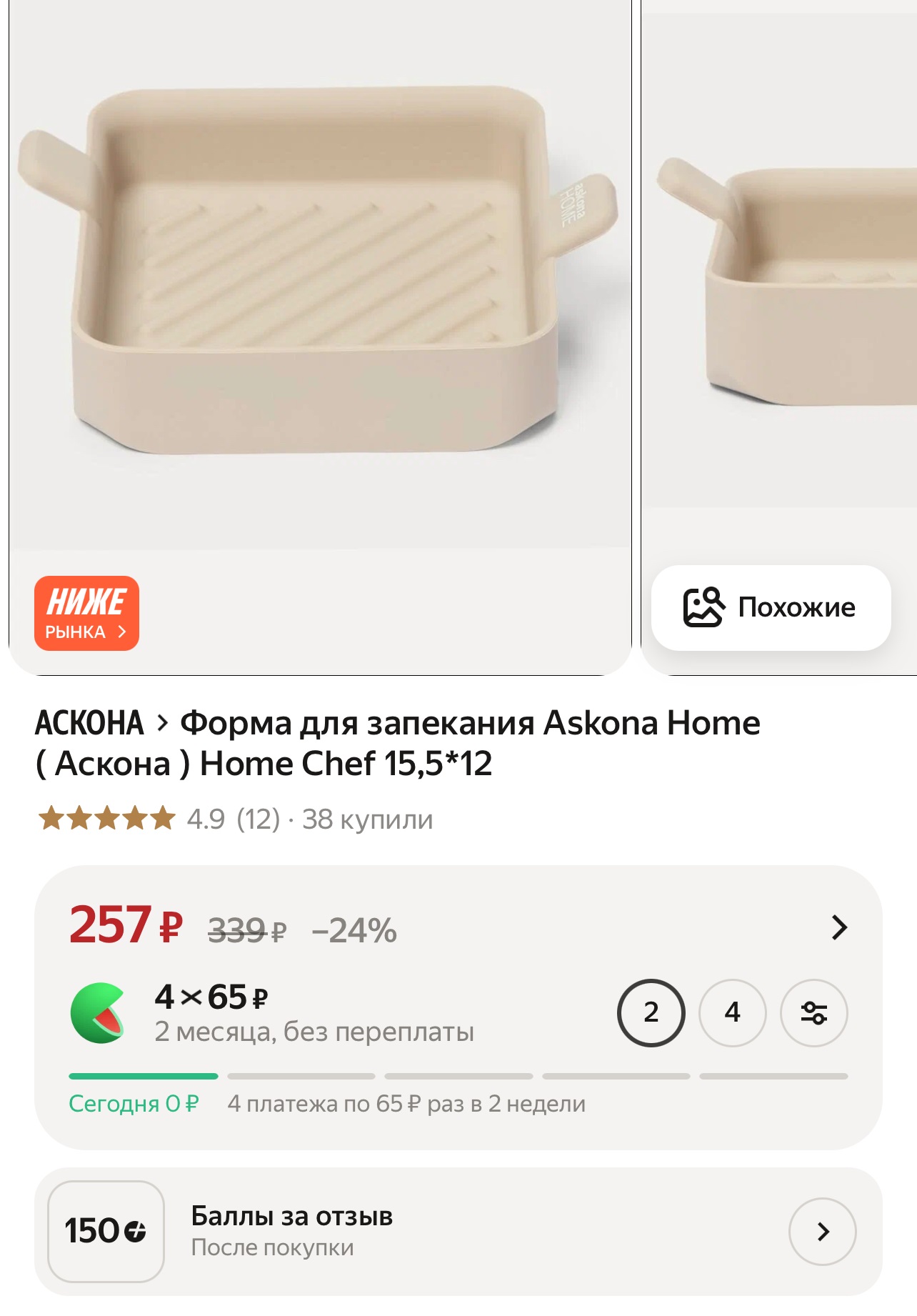 Форма для запекания Askona home с учетом баллов за отзыв цена 107 рублей (индивидуальная у всех) https://go.hl.ru/1EhU0