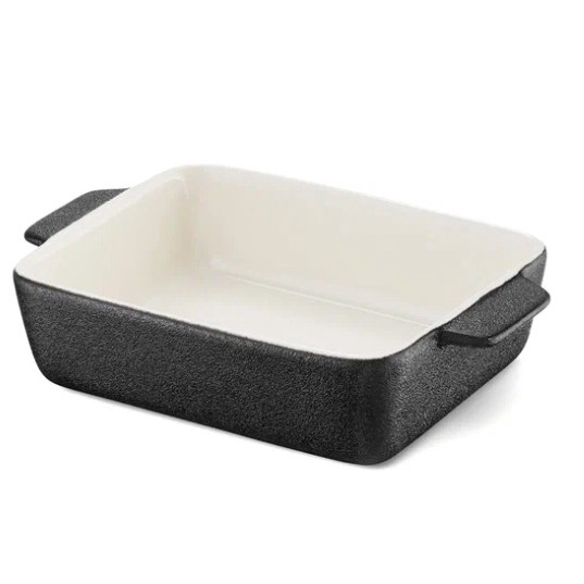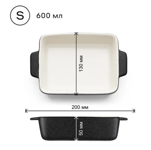 Размер 20×13×5 см, цвет графитовый чёрный. Сделана из натуральной глины, так что вредных веществ при нагреве не выделяет. А ещё её мыть можно в посудомойке. У формы удобные ручки - держать прихватками будет легко. Лаконичная квадратная форма подходит для запеканок, мяса, овощей. Выдерживает температуру до 220 градусов, можно использовать в духовке, микроволновке и даже для заморозки. Подходит и для сервировки стола. Простая и аккуратная вещь для кухни.