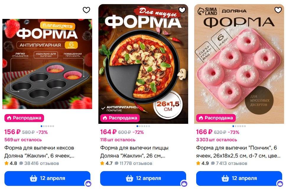 добная подборка для тех, кто любит печь: силиконовые формы, для кексов, пиццы, печенья и даже пергаментные круги. Цены уже с учётом Ozon карты.